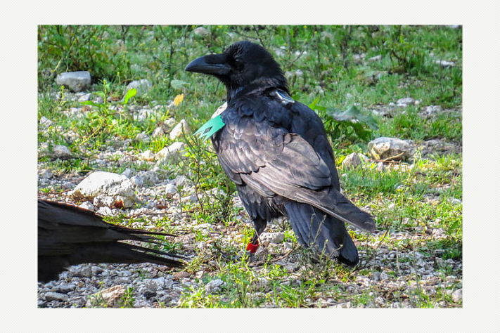 13 Stück der voll ausgewachsenen Kolkraben sind nach 4 Monaten von der Forschungsstation Haidlhof an die Konrad-Lorenz-Forschungsstelle Grünau im Almtal übersiedelt. Dort wurden sie bereits in den ansässigen Bestand an Kolkraben re-integriert. Ein mehrjähriges Forschungsprojekt von Thomas Bugnyar und seinem Team soll zeigen, wo sich die individuell markierten und besenderten Raben aufhalten und mit welchen Raben sie weiterhin Kontakt halten. Fotos von Matthias Loretto.