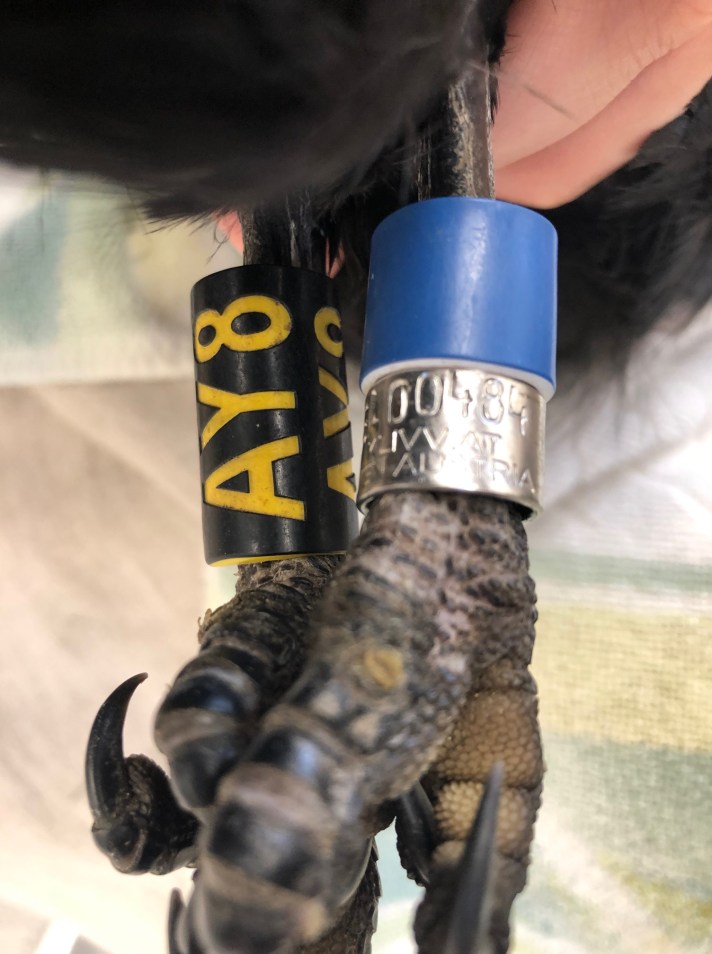 ….das sind nur vier von insgesamt siebzehn Kolkraben welche in den nächsten Tagen an der Konrad-Lorenz-Forschungsstelle in Grünau im Almtal ausgewildert werden. Nach eingehender gesundheitlicher Untersuchung, individueller Markierung und verschiedener Persönlichkeitstest in der Gruppe und in Einzelnen, werden die Volieren der Jungraben geöffnet. Ihr Verhalten und Bewegungsmuster sollen darüber Aufschluss geben, welche Bedeutung die Herkunftsfamilie und Nestgröße auf die Überlebenschancen der jungen Kolkraben haben. Wir wünschen euch auf eurer Reise alles Gute!