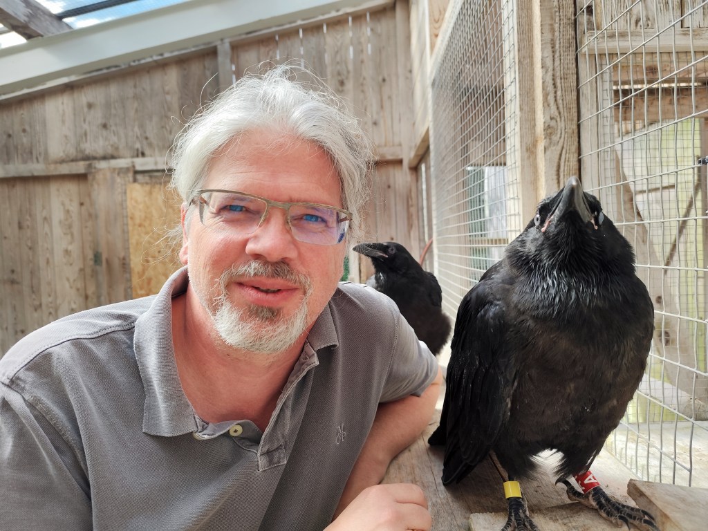 Davon konnte sich auch Thomas Bugnyar selbst überzeugen! Omar hält sich dezent im Hintergrund und Shu ist noch nicht ganz sicher ob ihr das Posieren auch gefällt…….